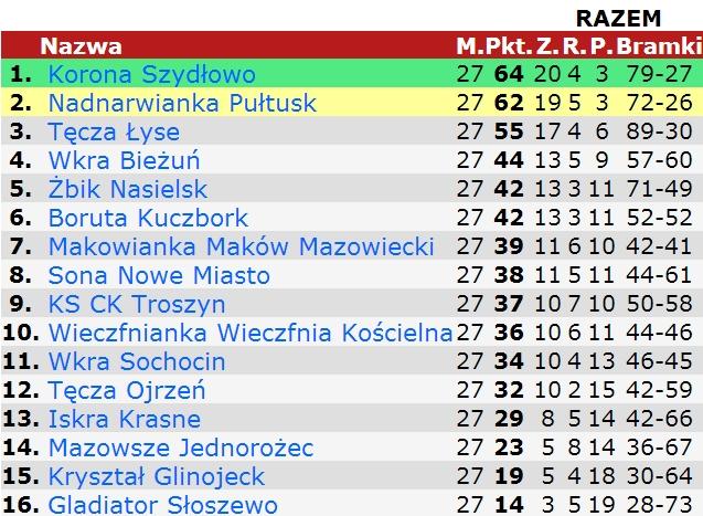 W rundzie jesiennej na stadionie w Pułtusk, Nadnarwianka rozgromiła rywali 4-0. Aby myśleć o dogonieniu lidera z Szydłowa, nasi piłkarze muszą wygrać wszystkie spotkania do końca sezonu i liczyć na potknięcie Korony Szydłowo.