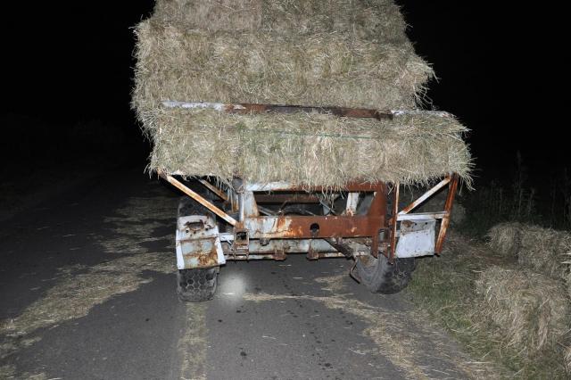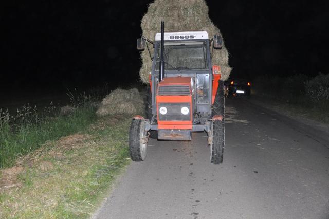 28-letnia kobieta nie zdążyła zahamować przed ciągnikiem z przyczepą wypełnioną sianem i uderzyła w jej tył.