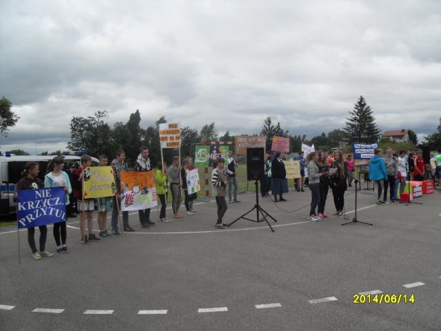 Młodzież, przedstawiciele samorządu, pedagodzy oraz policjanci przeszli ulicami Obrytego z transparentami zachęcając tym samym do otwartości na drugiego człowieka oraz życia bez uzależnień i przemocy.
