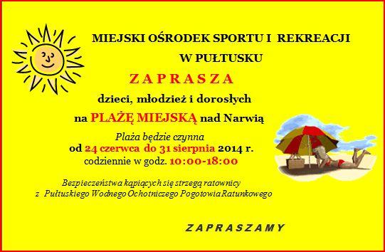 Miejski Ośrodek Sportu i Rekreacji w Pułtusku zaprasza do korzystania z plaży nad Narwią! Masz wolny czas, chcesz się opalić? Wpadaj nad Narwię!