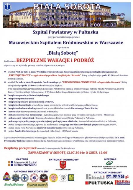 Akcja "Biała Sobota" pod hasłem BEZPIECZNE WAKACJE I PODRÓŻ z udziałem Komendy Powiatowej Policji w Pułtusku odbędzie się w najbliższą sobotę.