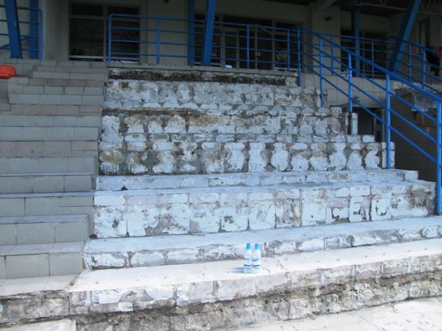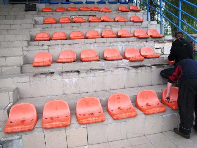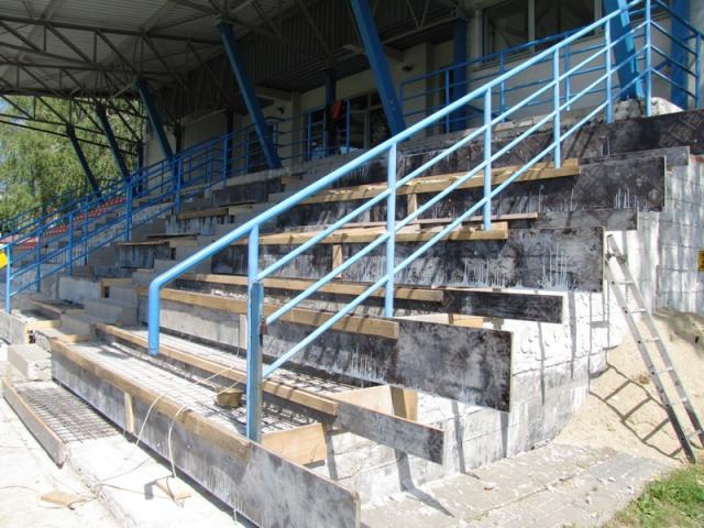 15 lipca ruszył też remont trybuny dla widzów. Odpadające kafelki z podestów i ścian, a także liczne pęknięcia stwarzały niebezpieczeństwo dla osób tam przebywających. Trybuna zostanie pokryta kilkucentymetrową warstwą betonu wzmocnionego stalową siatką, co ma zabezpieczyć przed pękaniem. Kolejne działania będą polegały na położeniu warstwy polimerowej. Ściany boczne zostaną wytynkowane i pomalowane. Przed trybuną zostanie wyłożony chodnik z kostki betonowej.