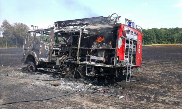 W chwili przybycia na miejsce pożaru samochód ratowniczo-gaśniczy uległ awarii i nie mógł opuścić miejsce zdarzenia ani podać wody w obronie przed ogniem.