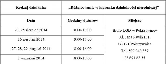 W związku z naborem wniosków w ramach działania ,,Wdrażanie lokalnych strategii rozwoju" PROW na lata 2007 - 2013 na operacje: ,,Różnicowanie w kierunku działalności nierolniczej" można korzystać w bezpłatnych porad doradcy.