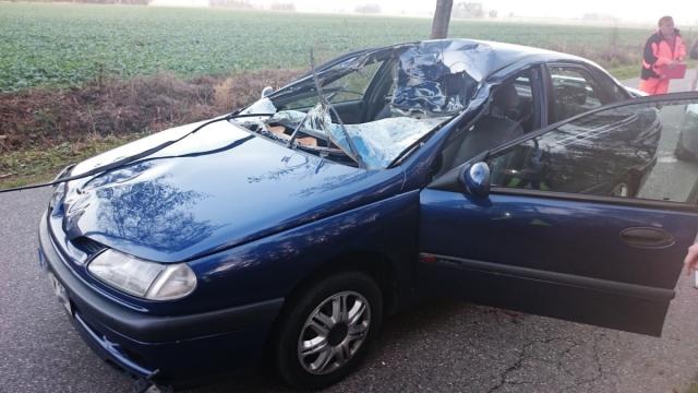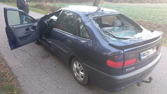 Widoczne na zdjęciach zniszczenia samochodu osobowego zostały spowodowane przez łosia, który wtargnął na jezdnię. Na szczęście nikomu nic się nie stało, ucierpiał jedynie zwierzak.