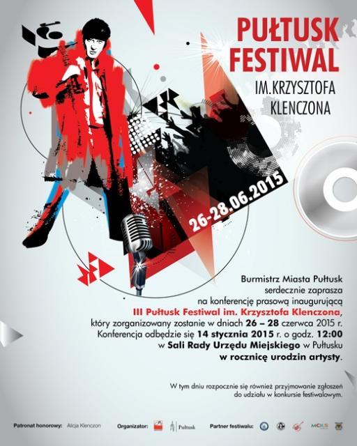 Burmistrz Miasta Pułtusk zaprasza na konferencję prasową inaugurującą III Pułtusk Festiwal im. Krzysztofa Klenczona.