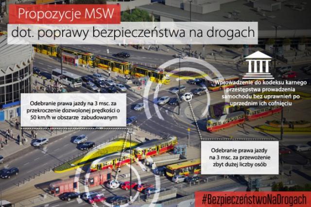 Wyżej wymienione propozycje Ministerstwa Spraw Wewnętrznych znalazły się w przyjętej 6 lutego przez Sejm nowelizacji ustawy Kodeks karny oraz niektórych innych ustaw. Projekt nowelizacji był wspólnym przedsięwzięciem trzech resortów. Oprócz rozwiązań zaproponowanych przez MSW w dokumencie znalazły się propozycje Ministerstwa Sprawiedliwości oraz Ministerstwa Infrastruktury i Rozwoju - m.in. wprowadzenia do kodeksu karnego przestępstwa prowadzenia samochodu bez uprawnień po ich odebraniu przez sąd (w obecnie obowiązującym stanie prawnym prowadzenie pojazdu bez uprawnień jest wykroczeniem), dożywotniego zakazu prowadzenia pojazdów dla kierowców prowadzących pojazd w stanie nietrzeźwości mimo uprzedniego skazania za to samo przestępstwo, dotkliwych kar finansowych dla osób prowadzących pojazdy pod wpływem alkoholu oraz obowiązku zainstalowania w samochodzie blokady alkoholowej tzw. "alcolock" dla osób skazanych za prowadzenie pojazdu w stanie nietrzeźwości.