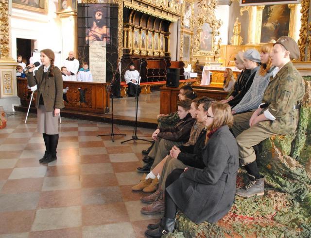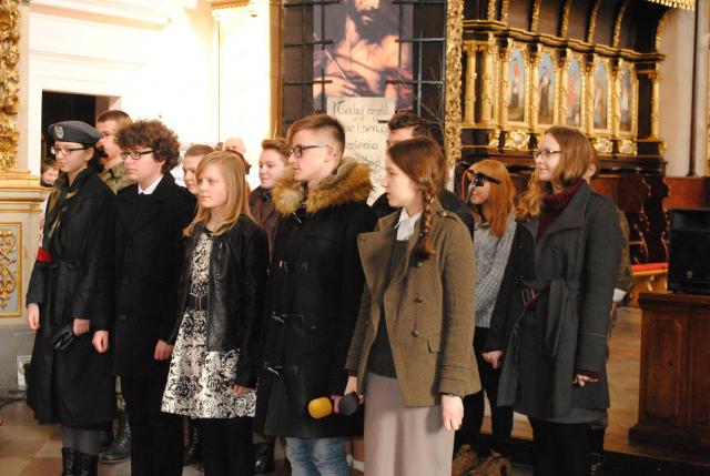 Następnie o godz.12.00 w Bazylice Pułtuskiej została odprawiona msza św. w intencji pomordowanych, zmarłych i żyjących "Żołnierzy Wyklętych", poprzedzona programem "Zwycięzcy nie umierają" w wykonaniu uczniów Publicznego Gimnazjum nr 3 im. bp. A. Noskowskiego w Pułtusku.
