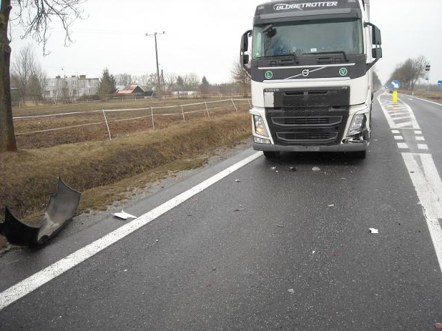 Kierujący samochodem ciężarowym Volvo nie zachował należytej odległości od jadącej przed nim Hondy i najechał na jej tył.