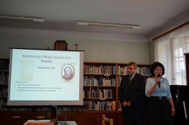 W dniu 29 kwietnia 2015 r. z okazji 224 rocznicy uchwalenia Konstytucji 3 Maja w czytelni Pułtuskiej Biblioteki Publicznej im. Joachima Lelewela odbyła się prelekcja dra. Radosława Lolo. Temat spotkania to Konstytucja 3 Maja oczyma Jana Matejki.