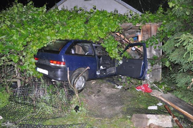 Następnie ustalili, że 20-latek kierując pojazd marki Suzuki na rozwidleniu drogi na Przewodowo i Bulkowo w miejscowości Lipniki Stare z nieznanych przyczyn zjechał na pobocze pomiędzy tymi drogami, uderzył w drewniane ogrodzenie z następnie jadąc przez zadrzewiony teren wjechał w garaż stojący na posesji. We wnętrzu jego znajdował się samochód, który uległ uszkodzeniu.