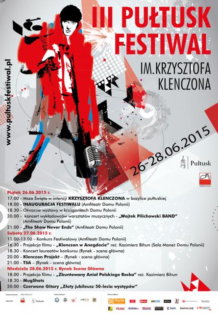 Pułtusk jest miastem, które w zwia?zku z postacia? Klenczona ma podwójna? symbolike?. To tutaj zacze?ła sie? jego z?yciowa podróz?, której kolejnym przystankiem były Mazury. Te?dy tez? biegnie szlak wodny prowadza?cy z?eglarzy w kierunku Krainy Wielkich Jezior - tak ukochanych przez artyste?. Odwiedzaja?c Pułtusk i uczestnicza?c w festiwalu, oprócz doznan? muzycznych, be?dzie moz?na pospacerowac? po najdłuz?szym rynku w Europie ? mijaja?c po drodze kamienice?, w której stacjonował niegdys? Napoleon, czy miejsce gdzie mieszkał autor "Wspomnien? niebieskiego mundurka" - Wiktor Gomulicki. Z urokliwego portu nad Narwia? rozpos?ciera sie? widok na pie?kna? Puszcze? Biała?.