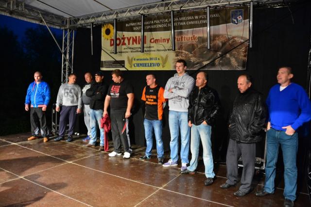 Na zakończenie sportowych zmagań Gminnych Dożynek w Chmielewie odbyły się zawody w wyciskaniu odważnika 17,5 kg.