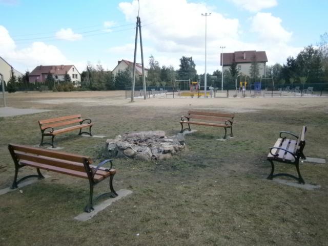 - ułożeniu palisady betonowej oraz płyt pod ławki, a także ustawieniu nowych ławek,