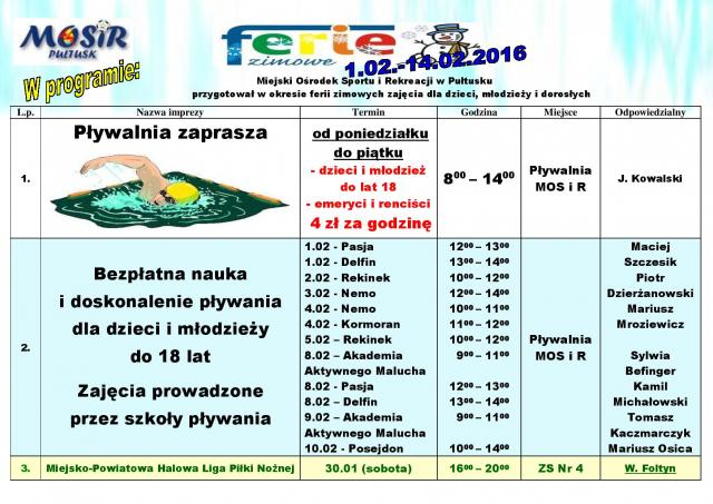 Pułtuska oferta na ferie zimowe