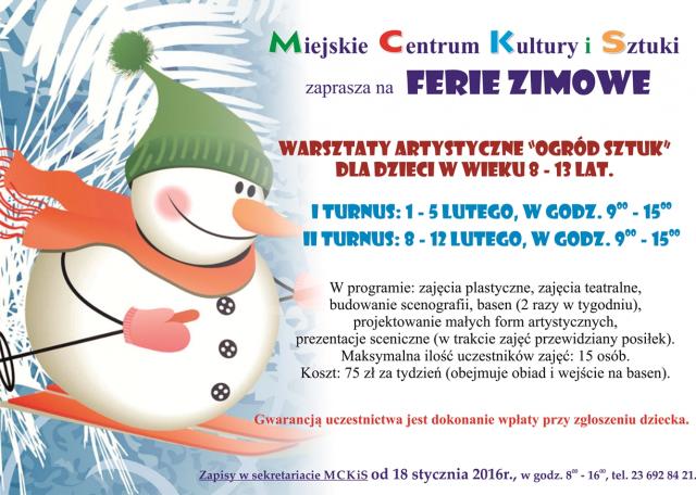Sprawdź, co będzie się działo podczas tegorocznych ferii zimowych w naszym mieście.