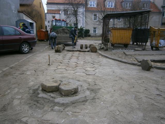 Pracownicy Pułtuskiego Przedsiębiorstwa Usług Komunalnych Spółki z o.o. wykonali naprawę jezdni w uliczce staromiejskiej łączącej Rynek z ulicą Piotra Skargi - podniesiono zapadniętą jezdnię i ponownie ułożono trylinkę.