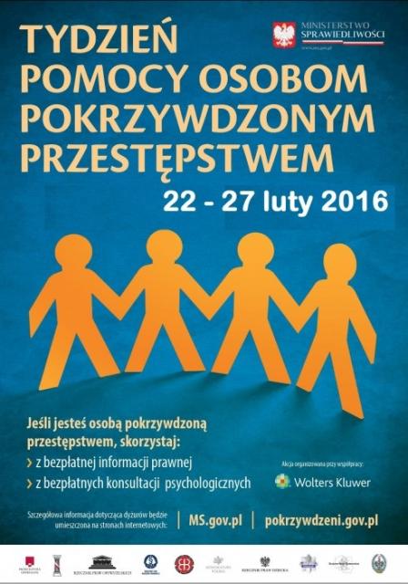 Przed nami kolejny "Tydzień Pomocy Osobom Pokrzywdzonym Przestępstwem". Między 22 a 27 lutego 2016 r. każdy zainteresowany będzie mógł zgłosić się o poradę m.in. do adwokatów, radców prawnych, prokuratorów, policjantów, czy kuratorów sądowych i komorników.
