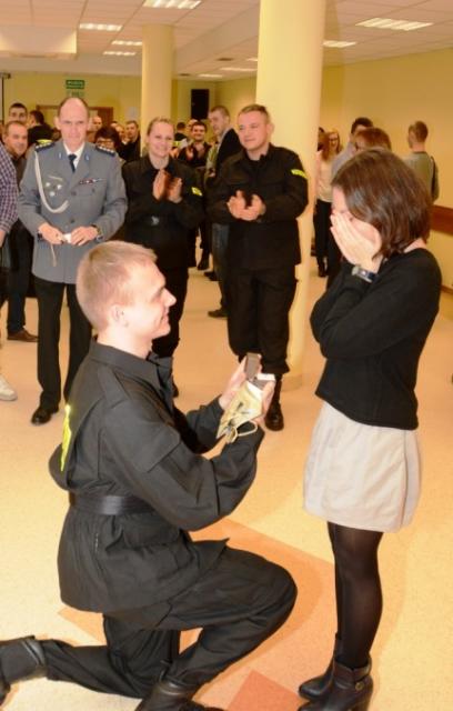Dzień ślubowania okazał się także ważny dla partnerki jednego z nowych policjantów. Tuż po uroczystości oświadczył się jej, a co najważniejsze, oświadczyny, przy aplauzie zebranych gości, zostały przyjęte.
