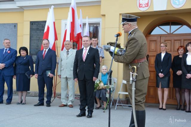 Oficjalne obchody Narodowego Święta Trzeciego Maja stały się również okazją aby docenić Grupę Rekonstrukcji Historycznej 13 Pułku Piechoty przy Pułtuskim Towarzystwie społeczno-Kulturalnym w Pułtusku, która przy każdej okazji dba o wartę honorową i oprawę wojskową ważnych uroczystości. Na ręce chorążego Leszka Topólskiego burmistrz Krzysztof Nuszkiewicz wręczył 3 komplety historycznego umundurowania żołnierzy 13 Pułku Piechoty ufundowane przez Samorząd Gminy Pułtusk.
