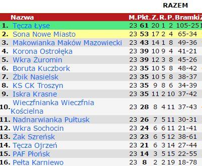 Po 23 kolejkach ligi okręgowej nasz zespół zajmuję dopiero 11 pozycję w tabeli z dorobkiem 23 punktów.
