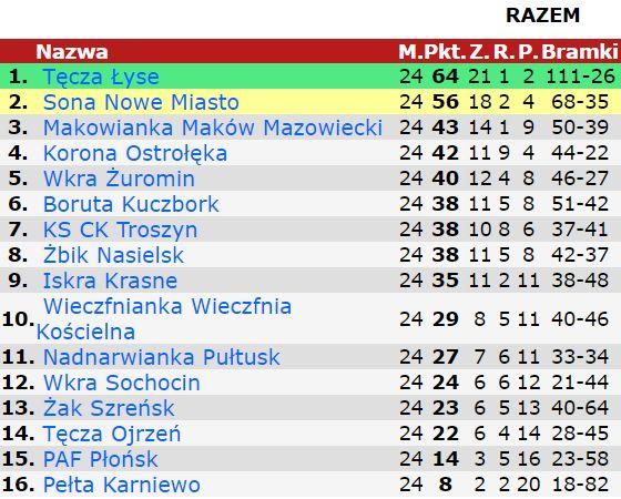 Nadnarwianka: W. Stelmach - K. Wiśniewski, P. Bobowski, M. Gołębiowski (53' D. Pik), Ł. Rurant, P. Cywiński, W. Karkowski, P. Kruk, A. Kembłowski, M. Aziz (60' J. Godlewski), M. Dziczek