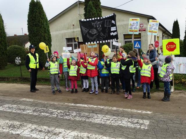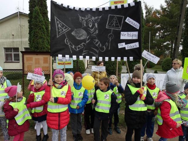 Policjanci zaprosili drugoklasistów na zajęcia praktyczne, które odbyły się na przejściu dla pieszych w pobliżu szkoły. Roześmiany korowód, uzbrojony w transparenty i żółto- niebieskie balony postawił na jednym - przemówić do rozsądku kierowców. W ramach akcji dzieci prezentowały plakaty, demonstrując w ten sposób, że tylko kierowca, który zachowuje szczególną ostrożność zbliżając się do przejścia dla pieszych jest kulturalnym partnerem na drodze. Przyjaźni kierowcy otrzymali z rąk najmłodszych ulotki promujące. Odzewem były serdeczne uśmiechy w ich stronę. W podziękowaniu za zaangażowanie w kampanii profilaktycznej dzieci otrzymały odblaski.
