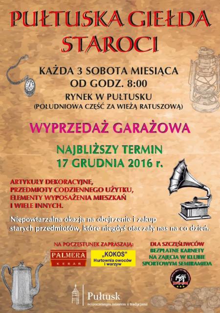 W każdą trzecią sobotę miesiąca, na rynku w Pułtusku, odbywać się będzie giełda staroci.