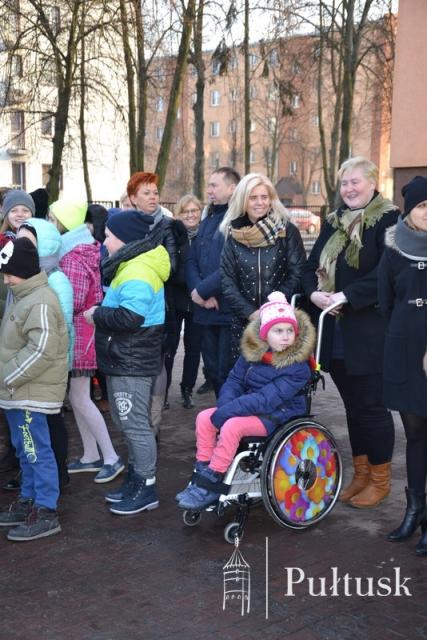 W ramach podziękowania za starania poczynione w kierunku zakupu pojazdu, grupa uczniów niepełnosprawnych wręczyła kwiaty Krzysztofowi Nuszkiewiczowi Burmistrzowi Miasta Pułtusk oraz Annie Frejlich Dyrektor Powiatowego Centrum Pomocy Rodzinie w Pułtusku.