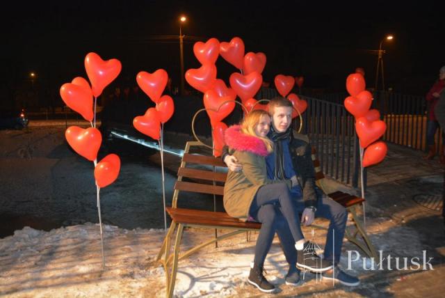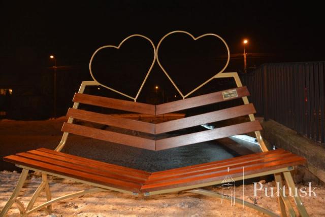 W Walentynki przez Zastępcę Burmistrza Miasta Pułtusk Różę Krasucką i parę zakochanych uczestników spotkania została odsłonięta Pułtuska ławka zakochanych.