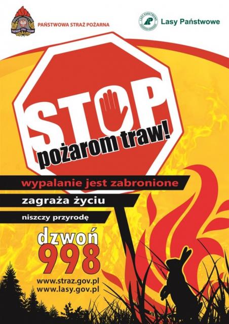 Przełom zimy i wiosny to okres, w których wyraźnie wzrasta liczba pożarów traw na łąkach i nieużytkach rolnych. Spowodowane jest to wypalaniem suchych traw i pozostałości roślinnych. Obszary zeszłorocznej wysuszonej roślinności stanowią doskonały materiał palny, co w połączeniu z działalnością ludzi skutkuje gwałtownym wzrostem pożarów (największa liczba pożarów traw przypada na marzec i kwiecień).