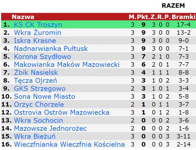 Nadnarwianka z kompletem punktów po trzech kolejkach.