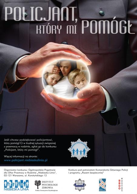 Wśród funkcjonariuszy, którzy pracują z ofiarami przemocy w rodzinie, wskazać można także takich, którzy wyróżniają się na tle innych. Przynajmniej niektórym warto podziękować w sposób szczególny. Już od sześciu lat Ogólnopolskie Pogotowie dla Ofiar Przemocy w Rodzinie "Niebieska Linia" organizuje konkurs pn. "Policjant, który mi pomógł". To doskonała okazja, by wyróżnić policjantów wyjątkowo angażujących się we wszelkiego rodzaju działania, których celem jest zapobieganie przemocy w rodzinie. Co ważne, zgłoszenia do konkursu konkretnego policjanta nadsyłają do organizatorów te osoby, które uzyskały od niego pomoc, a także przedstawiciele organizacji i instytucji, z którymi on współpracuje. Dla zaangażowanego w swoją pracę policjanta, który poświęca się jej bez reszty, taki wyraz uznania ze strony osób, którym pomaga, jest największą nagrodą i wartością.