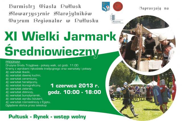Burmistrz miasta Pułtusk, Stowarzyszenie Starożytników i Muzeum Regionalne w Pułtusku zaprasza na Jarmark Średniowieczny.