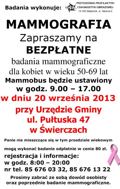 Mammobus będzie stacjonował w miejscowości Świercze