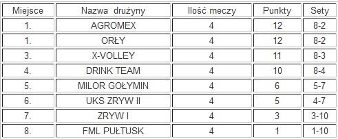 Ostatnie spotkanie rozegrały zespoły Drink Team i Orłów. W tej konfrontacji lepsi okazali się zawodnicy Orłów. Wygrali mecz 2:0 w setach do 17 i 20. Suchy wynik nie odzwierciedla jednak wydarzeń na parkiecie, gdzie zawodnicy obu drużyn pokazali wiele bardzo dobrych zagrań. Zwłaszcza gra obronna stała na wysokim poziomie.