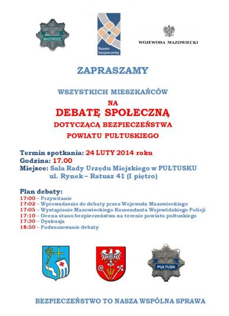 Każdy mieszkaniec powiatu pułtuskiego, któremu nie jest obojętne bezpieczeństwo powinien wziąć udział w debacie społecznej dotycząca bezpieczeństwa powiatu.
