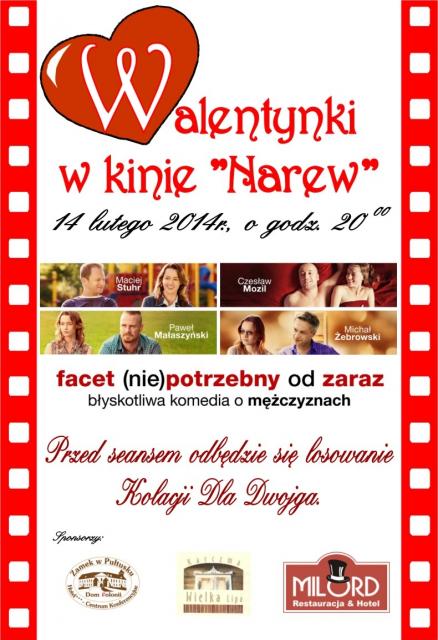 W walentynki kino Narew zaprasza na premierę polskiej komedii romantycznej. Przed seanse obędzie się losowanie Kolacji dla Dwojga.