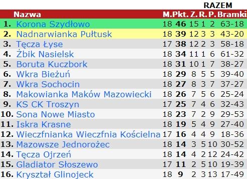 Nadnarwianka: Ł. Wilczewski (83' czerowna kartka)- K. Wanielista, P. Bobowski, A. Miłoszewski, Ł. Wolf , B. Salamon (60' P. Cywiński), J. Zalewski, R. Krzyżewski (84' R. Turek), A. Kembłowski (80' K. Jagielski I), M. Kucharczyk (73' E. Dżawakian), P. Bartczak