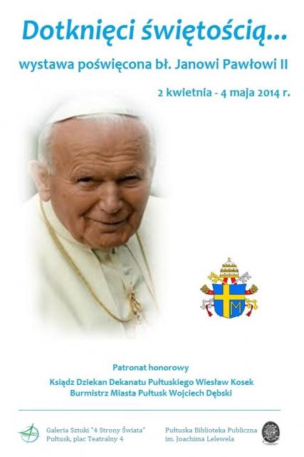 Już dziś w Galerii Sztuki "4 Strony Świata" odbędzie się uroczyste otwarcie wystawy poświęconej bł. Janowi Pawłowi II pt. "Dotknięci świętością..." pod honorowym patronatem Księdza Dziekana Dekanatu Pułtuskiego.