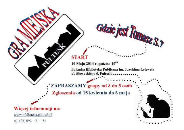 Lelewel zaprasza do udziału w Grze miejskiej o wątku kryminalnym pt. "Gdzie jest Tomasz S.?", która odbędzie się na terenie Pułtuska.
